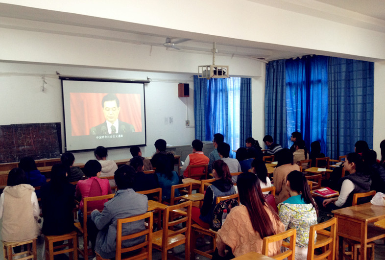 (艺术学院 谭欣)2013年3月8号中午12点30分,艺术学院各班级团支书与团学联所有干部在艺术楼210教室观看“十八大”相关内容视频以及湖北省委书记李鸿忠发言视频。