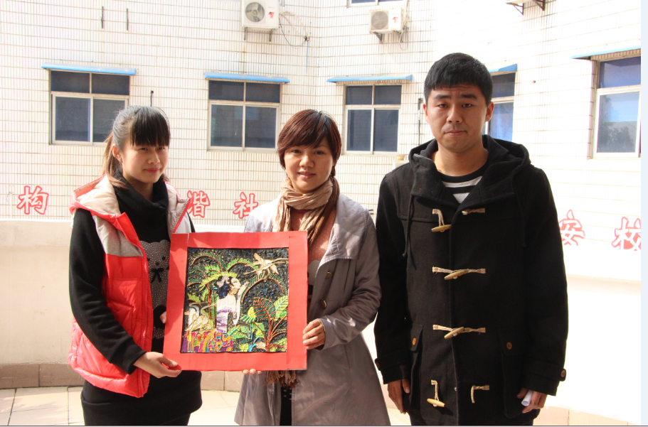 参与此次创意植树节的是艺术学院团学联志愿者服务队全体委员,大家参加了“节约再利用,创意绿色理想”的自制画活动。为符合低碳生活从我做起的观念,材料收集整理各班上课用过剩余喝废弃的各种材料。如:毛线、米粒、餐巾纸、盐等等。十名大一的委员制作的优秀创意作品、手工作品、贴画分别送给各院系院长、书记、辅导员作为纪念。