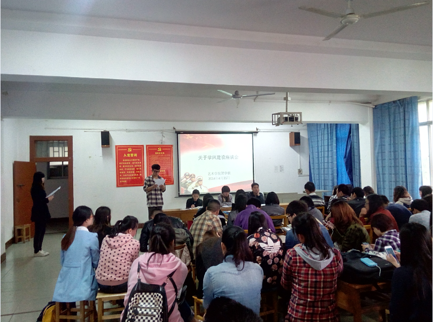 本讯网(艺术学院团学联见习记者 韩东升)为了切实加强和改进学风建设,艺术学院4月25日中午12点30分在9210举行了关于学风建设座谈会。学工办主任金琰,行政支部书记李京,辅导员邵航,团学联代表以及各班班长、团支书和学习委员出席了本次会议。