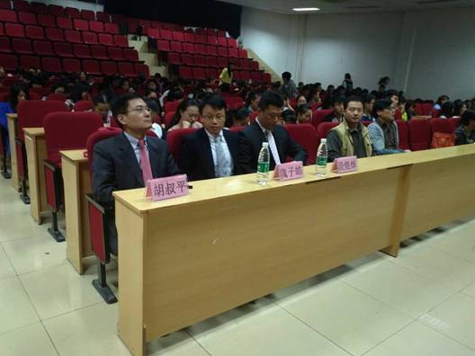 本网讯(艺术学院通讯员 陈瑞)10月16日晚,艺术学院14级新生、高年级的美术系、设计系学生在图书馆2号报告厅参加了我院举办的职业生涯规划专题讲座,本次讲座由张绍明副书记主持,讲座报告人是我院校企合作单位--广州箔霏德建材有限公司总经理胡叔平先生。胡叔平先生用深入浅出的语言,为同学们讲述了他的创业故事。他从我的择业、择业心态、就业能力、择业方向四个方面为同学们上了生动的一课。