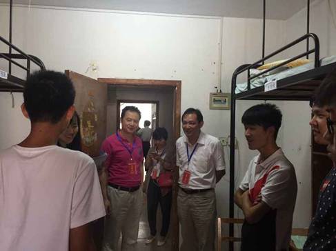 下午4点,常务副院长邵小孟、副书记张绍明以及新生班级老师金琰、邱晏华、杨帆到新生宿舍看望家长及学生、详细了解学生生活、思想,并强调要加强安全防范意识,同学之间要团结互助,及早适应大学生活。
