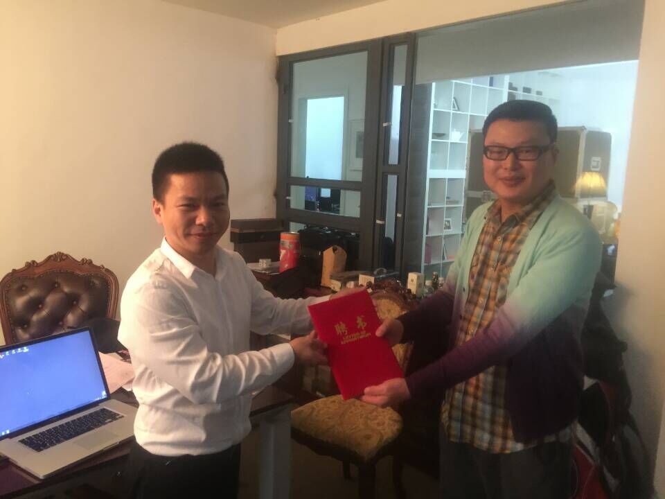 最后,副书记张绍明代表学院与企业签订就业实习基地建设协议,副院长金波并向刘帆先生授予湖北第二师范学院视觉传达设计专业企业导师聘书。