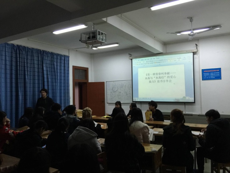 (本网讯 记者赵瑜)3月3日下午,由我院分团委组织的《有一种青春叫奉献——本禹与“本禹们”的爱心接力》读书分享会在艺术楼多媒体教室举行。各班团支书以及部分学生骨干进行集中学习和研讨。