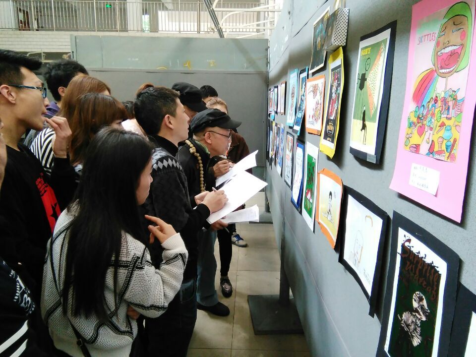 2016年新学期的第一周的星期五,艺术学院设计系视觉传达设计专业举行了一次别开生面的教师团队设计任务集体评议活动,艺术学院教师金波、谢静邀请设计系主任陈伟、美术系主任杨亚男以及艺术学院王智勇副教授组成教师团队,一起对学生完成的设计任务进行了集体评议。各位老师不仅认真的根据设计任务考核标准进行了评分,还分别就学生作品进行了点评。本次活动是继上一年度艺术学院开展基础课程考核集体评议模式之后,在本学院相关专业课程尝试实施的延续。