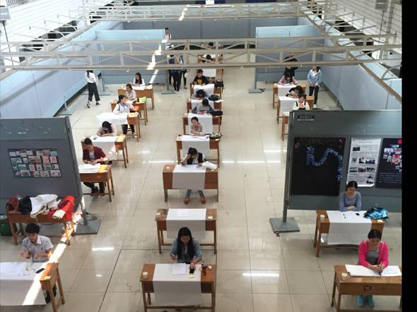 本网讯(通讯员 陈启皎 徐宇雯)4月14日下午两点,第二届“卓尔艺杯”书画大赛在9号艺术楼一楼展厅开赛。出席此次活动的领导老师有:校团委指导老师高琳、艺术学院分团委书记金琰、副书记张豫。美术系副系主任毛军、教师陈郢、易成功担任大赛的评委。