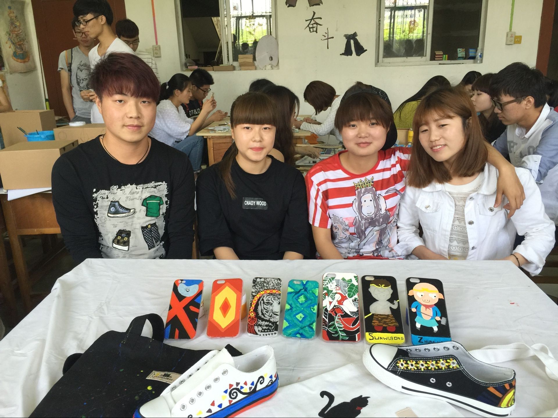为了贯彻学校改革课堂教学、加强实践环节、强化学生动手能力的指导思想,视觉传达设计专业教师谢静针对《装饰与图案》课程特点,设置了课堂作业产品化、创意化的课程目标,指导15级视觉传达设计1班全体同学把作业变成作品,把创意变成产品,同时在辅导员杨帆老师的协助下,组织了一场别开生面的义卖会,把课堂教学与社会实践有效的结合了起来。