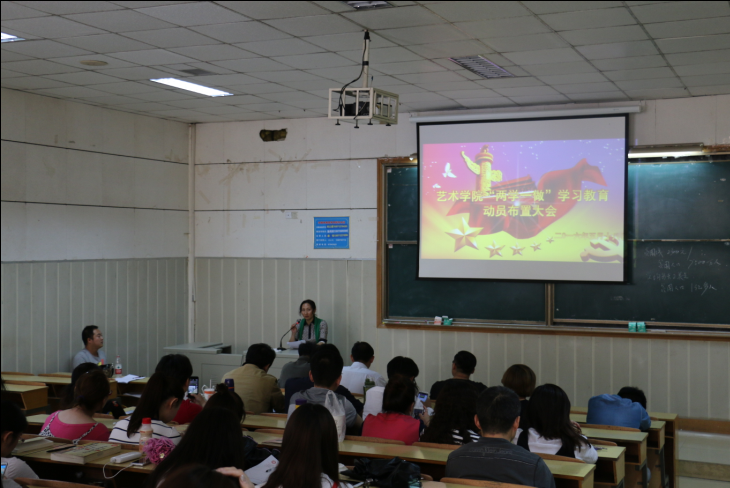 2016年5月19日下午,艺术学院党总支在阶梯教室1举行大会,“两学一做”学习教育进行全面动员部署。艺术学院全体领导干部、各系主任、教工党员和学生党员参加了动员会。会议由邵小孟院长主持。