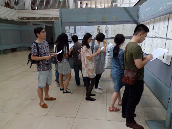 本网讯 2016年5月31日中午,在艺术学院动画专业负责人申请下,艺术学院设计系组织数字影像研室全体教师对动画专业基础课程《素描2》的教学效果进行了抽查,考核以集体评分形式展开。