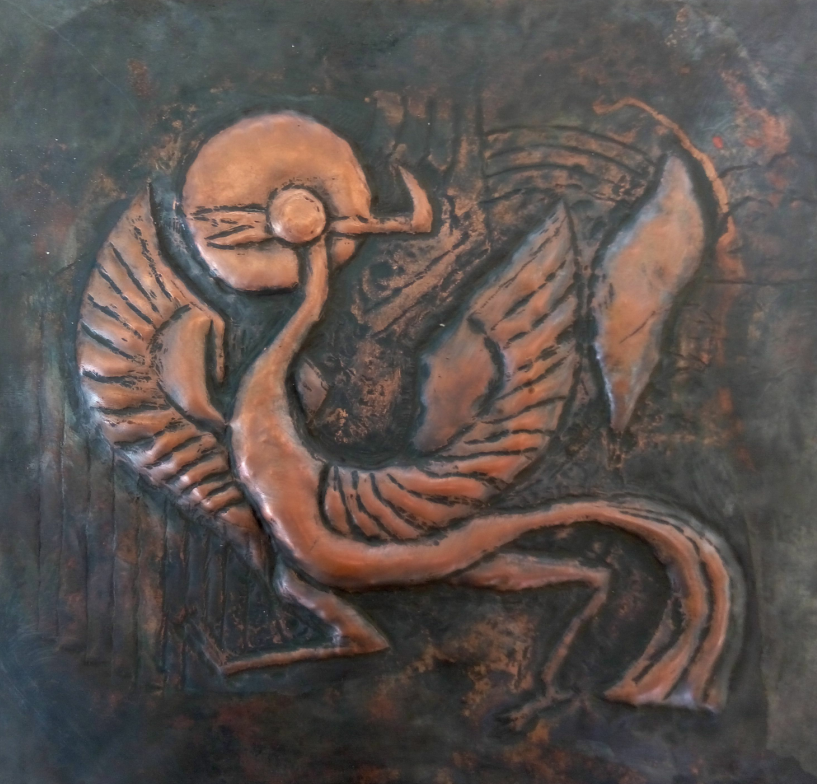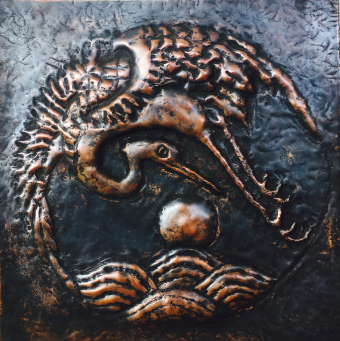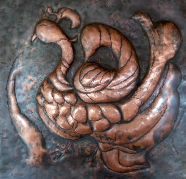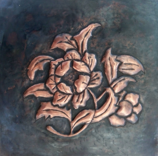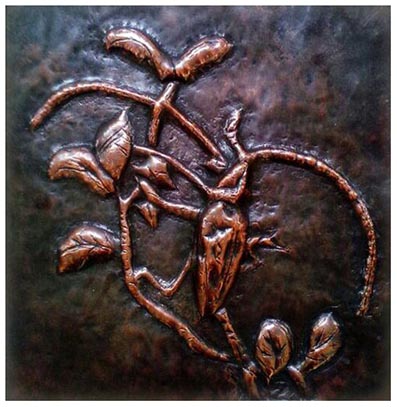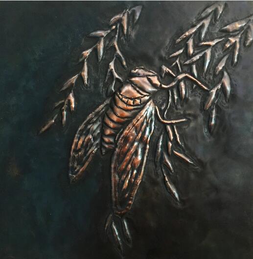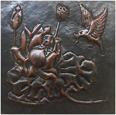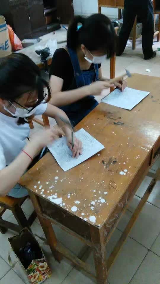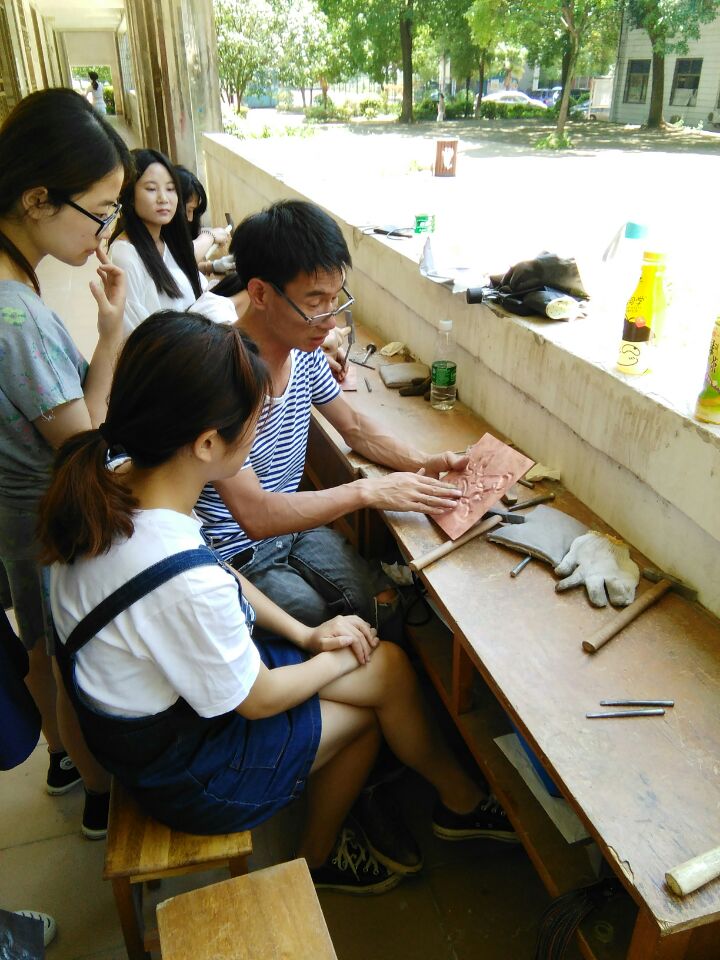 指导教师张虎在辅导学生锻铜技法 女汉子们挥锤如雨