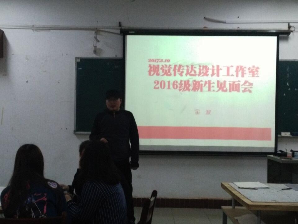 2017年3月10,2016级视觉传达设计专业志愿加入工作室的同学齐聚艺术实践中心,听专业负责人金波教授做了一场“设计是什么的”的专题报告,同时对同学们提出了“敬业、积极、完美”的要求,鼓励同学们明确学习目标,热爱设计事业,始终保持积极向上、努力奋进的心态,精益求精、力求完美的工作态度。会后30余名与会同学就下一阶段任务进行了激烈讨论,确定了基本的工作思路。