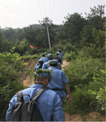 “红色 红安”实践小组从互帮互助、克服困难、坚持不懈等角度出发,将成员们的思想意识,团队精神发扬起来。首先,就是要学会团结协作,克服困难。其中最让大家印象深刻的就是登上陡峭的山坡。山顶风光无限好,如果不付诸行动,怕是要与目标相视而过了。在整个爬山的过程中,小组一行人不畏烈日的暴晒,手拉着手,相互鼓励着对方,尽管汗水早已浸透了成员们的衣服,但是,他们还是一如既往地朝山顶爬去。