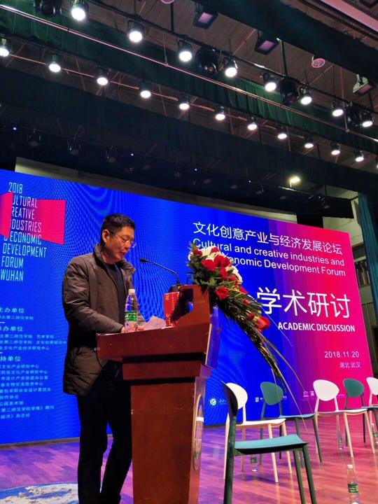 湖北省教育厅科技处处长王强在致辞中表示了对湖北文化产业经济研究中心所主办的此次活动的肯定,并表示研究中心只有往文创方向靠拢才能有发展的更多可能性,应积极为相关政府部门提供政策咨询、为社会企业机构提供服务、为社会发展和行业氛围贡献力量。