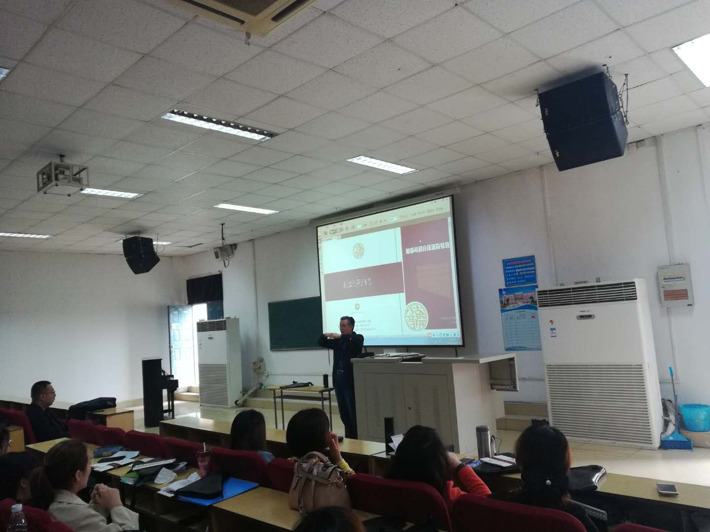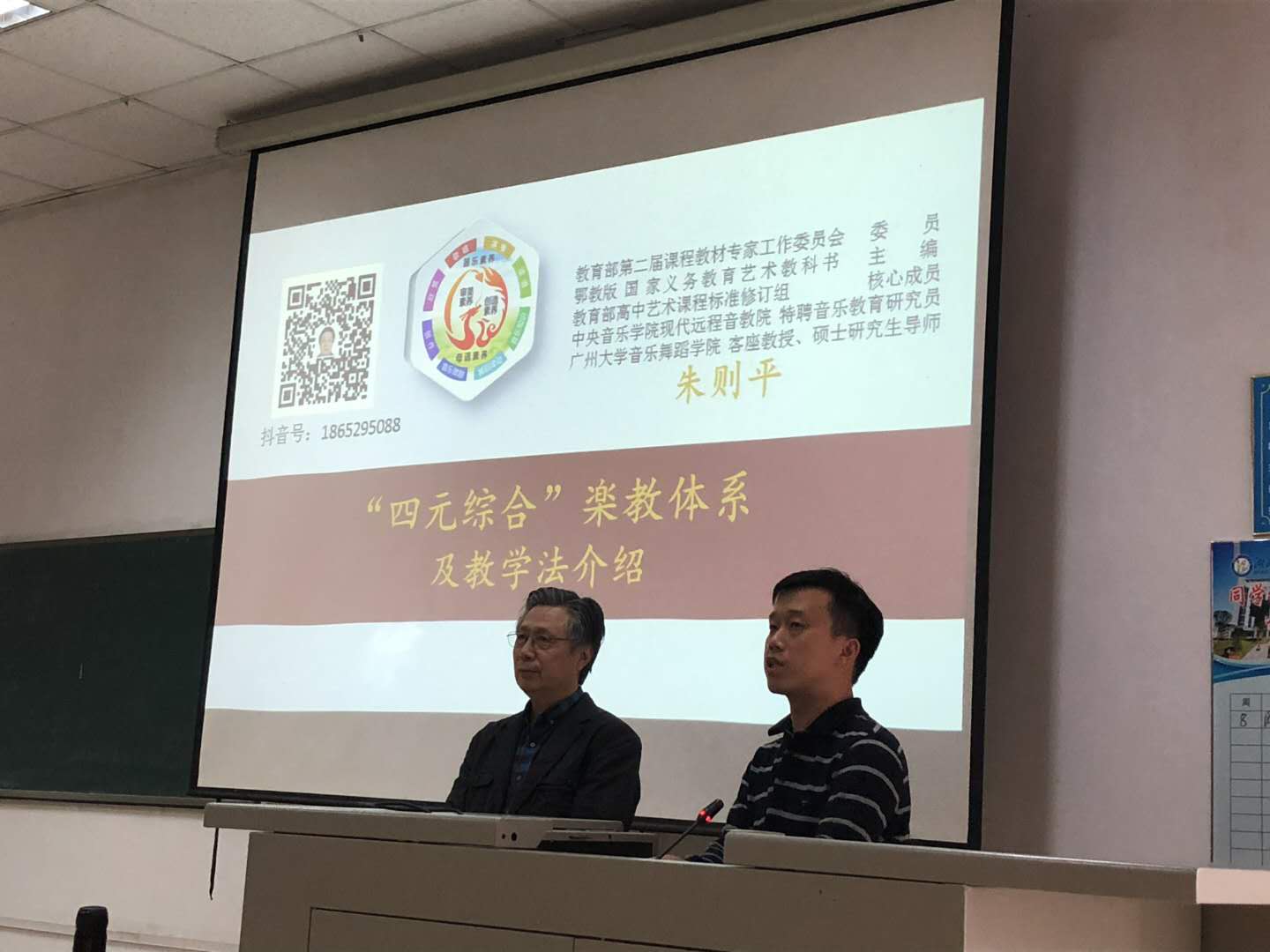 本网讯(通讯员 钟灵芝)2019年4月22日下午,中国音乐家协会会员、中国教育学会音乐教育专业委员会理事暨器乐学术委员会主任、国家艺术课程标准组核心成员、广州大学音乐舞蹈学院硕士研究生导师朱则平教授受邀来校,在老图书馆3号报告厅举行“四元综合”乐教体系器乐教学法讲座。艺术学院音乐系副主任邹毅主持,音乐系器乐教研室及理论教研室部分教师出席本次活动,2016级、2017级音乐学专业学生参与学习。