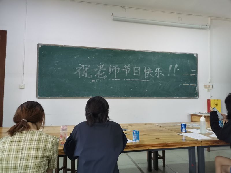 图为写在黑板上的祝福语