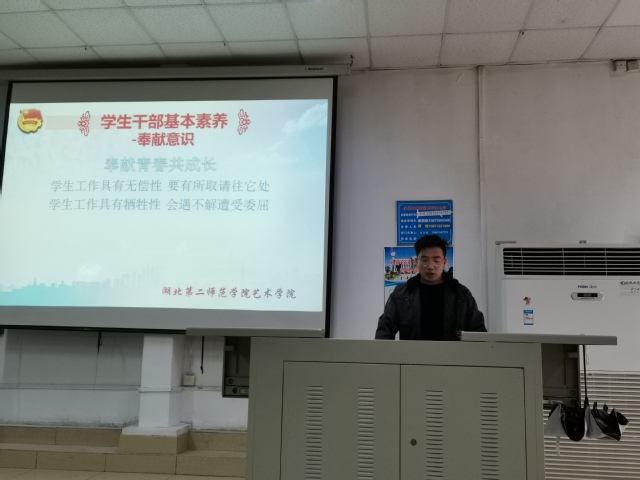 本网讯(通讯员 桂哲)2019年10月25日在湖北第二师范学院旧图书馆三号报告厅开展艺术学院团校培训第三课。