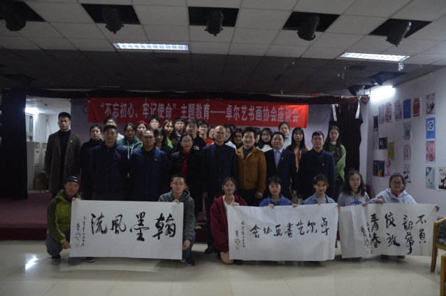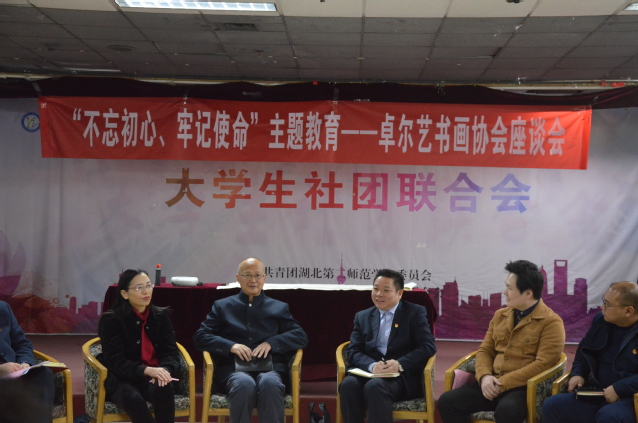 本网讯(通讯员 王超)11月21日下午,我校“不忘初心、牢记使命”主题教育——卓尔艺书画协会座谈会在大学生多功能活动厅顺利举行。校党委常委、副校长黄颂、学工部部长金殿中、艺术学院党总支书记雷静和及校团委、艺术学院相关人员出席会议。学生社团管理部学生干部、卓尔艺书画协会主要成员参与会议。