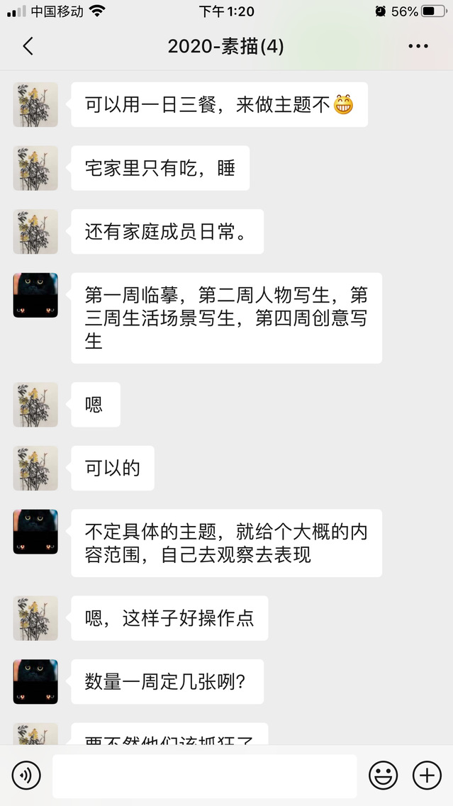 日子一天天过去,同学们渐入佳境,从一开始的不在状态到现在的兴趣盎然。每周老师们都会结合实际情况发布主题,尽量让同学们在压抑的环境中寻找和表达艺术之美。比如第三周生活场景速写写生内容:以家中的事物为写生对象,如厨房一角、阳台一角、书桌一角、院落一角等,不要刻意的去摆造型画画,而要描绘真实的生活化场景,自然的生活气息。另外,疫情时期大家看到的、感受到的,给自己留下深刻印象和感动人心的画面,也可以描绘进画面当中,各方驰援湖北的场景、方舱医院的建设场景等,我们用画笔向可爱可敬的逆行者们致敬!