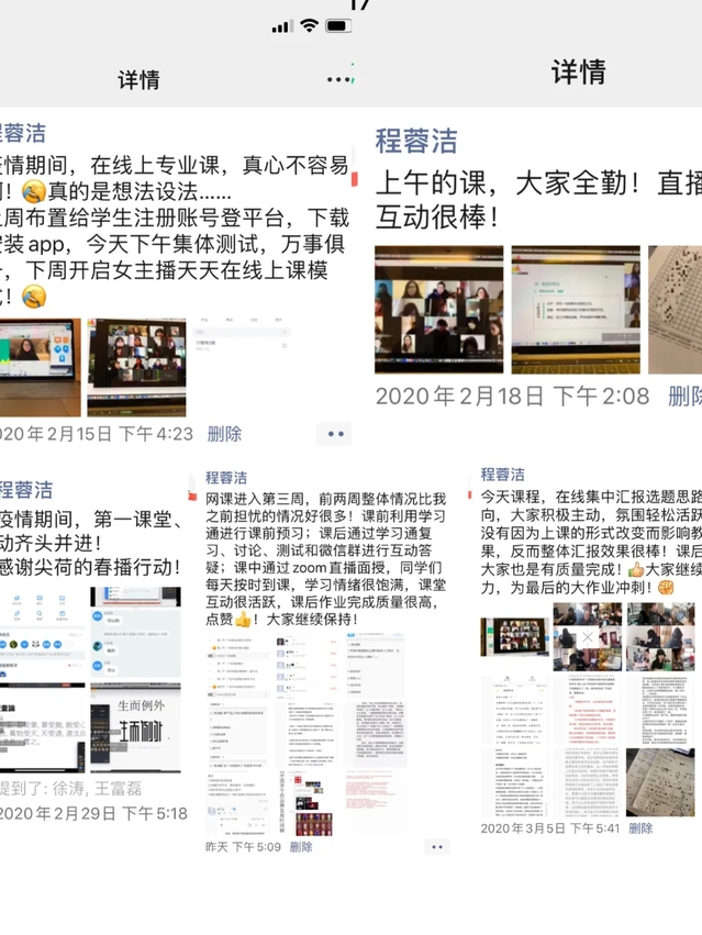 第二课堂的教学活动策划与实施,与尖荷联系开展“尖荷春播行动”,针对2020年新冠肺炎疫情,依托尖荷全国导师资源,通过钉钉群在线直播的方式,助力设计院校网络在线学习。尖荷全国导师每周六下午在钉钉群内在线直播课程分享。课程内容:包括但不限于经验分享、案例解读、毕业设计、实习就业、专业技能(标志、字体、包装、海报、版式.....)等。