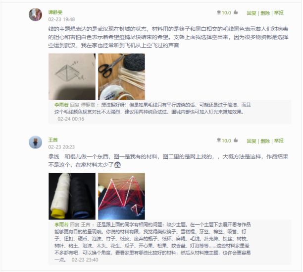 我认为比较难解决的是缺少与学生的面对面交流,无法近距离感受学生的学习状态,缺乏较为真实的教学反馈。针对专业课程,及时点评学生作品,提供案例照片启发学生灵感,随时回复学生疑问,组成教学团队,对不达标的作业打回重做,对优秀作业共享至班级群,同时作业过程要求拍摄并剪辑成vlog;针对理论课程,合理分布每一次课程的任务点数量和分布,增加知识点的讨论数量,丰富教学视频和资料,及时展开章节检测。