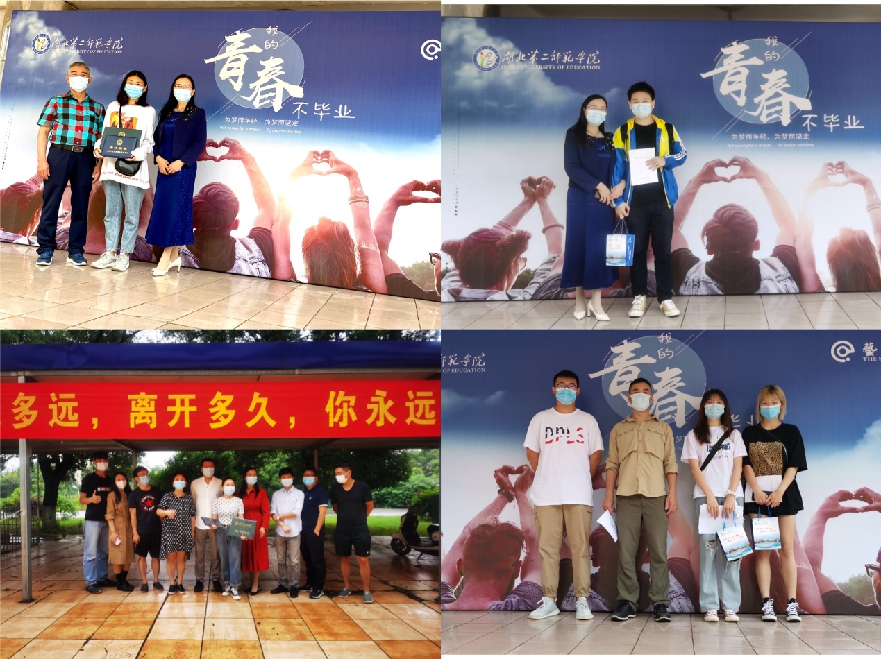 没有整齐的学士服,但学院为每个学生布置了专属于他们个人的毕业ppt;没有班级大合影,但学院在门口设置了合影背景墙。学院领导为每个学生颁发学位证书,送上真挚的祝福。
