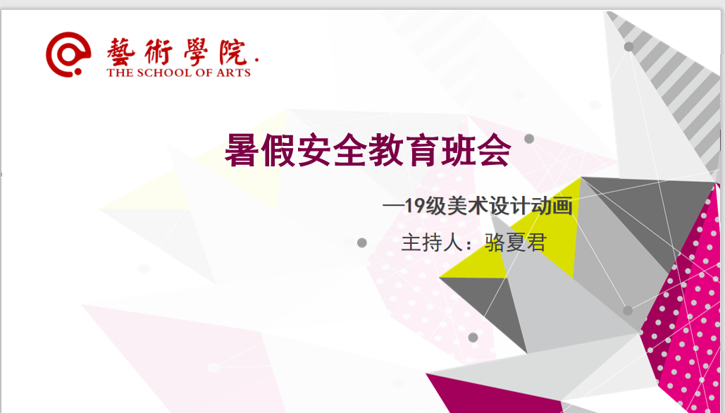(本网讯 通讯员 骆夏君)为贯彻落实学校暑假安全的要求,进一步加强暑期安全管理,提高学生的安全防范意识和能力,我院各年级认真开展了线上暑期安全教育班会。
