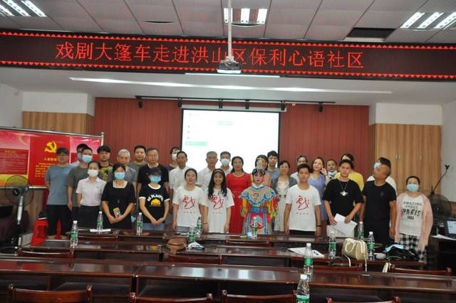 活动分文艺演出和主题观影两个板块,戏剧大篷车志愿者团队承担全部的文艺演出。志愿者王贺主持演出活动,戏剧大篷车负责人七色光(王培喜老师)与社区周书记共同演唱《为了谁》,赞颂军人的奉献和担当精神;原创戏剧小品《中国建筑工人》,由志愿者周佳语的父亲、一位参加火神山医院建设者的亲情故事改编而成,感人泪下,又激励人心;华师一附中高一学生舒尚是这次活动的最小志愿者,她以一曲京剧《霸王别姬》获得阵阵掌声;二师毕业生,老河口一中音乐教师冯文毅,因来汉看望七色光老师,得知这次公益活动,立马报名参加演出,为大家献上一曲《又见炊烟》。之后的观影活动由社区组织开展。演出结束后,街道赵科长对志愿者的公益精神表示钦佩,社区周书记称赞戏剧大篷车不愧是“湖北省本禹志愿服务队“,真正实现了为人民服务的宗旨,他希望这样的活动更多地走进社区,最后,大家合影留念。