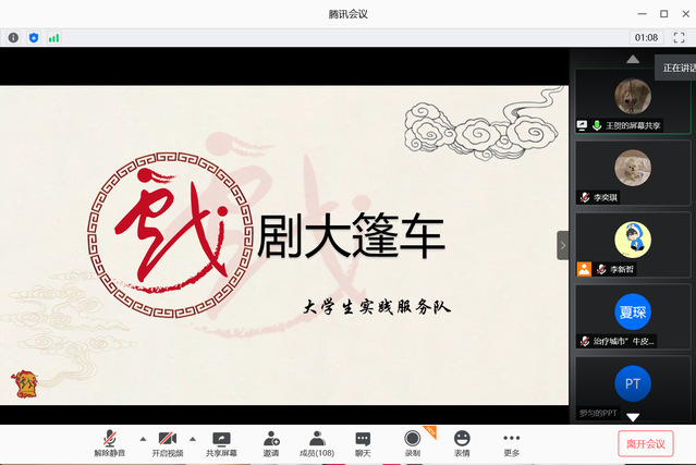 本网讯(通讯员 李奕琪)2020年9月4日,我院举行了2020暑期“三下乡”社会实践成果线上答辩会。本次活动邀请到艺术学院分团委副书记骆夏君老师担任评委,甄选优秀团队进入校级成果答辩会。