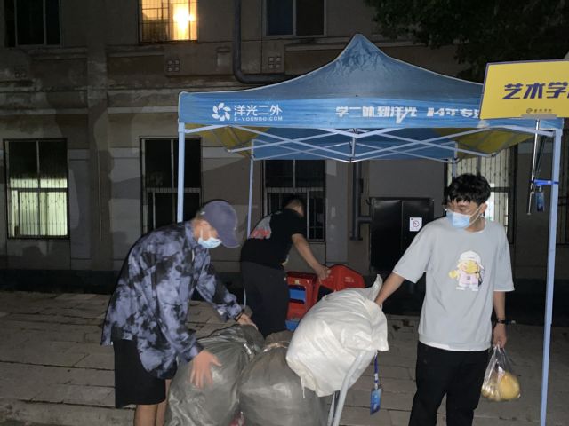 图6:晚上七点结束迎新志愿者们收拾艺术学院接待处