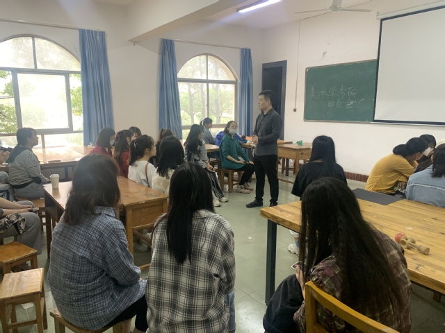 本网讯(通讯员 王超)9月22日上午9时,美术学专业针对2021届毕业生考研摸底情况与学生具体需求,开展考研学生帮扶推进会。会中美术学专业负责人王超老师针对学生关注的热点问进行了具体帮扶安排,如:考研帮扶导师安排、考研备战教室落实、学生意向考研院校导师牵线联络等。会中,美术学专业2021届29位拟考研的学生,对学院提供的帮扶环节表示满意,对考研充满信心。
