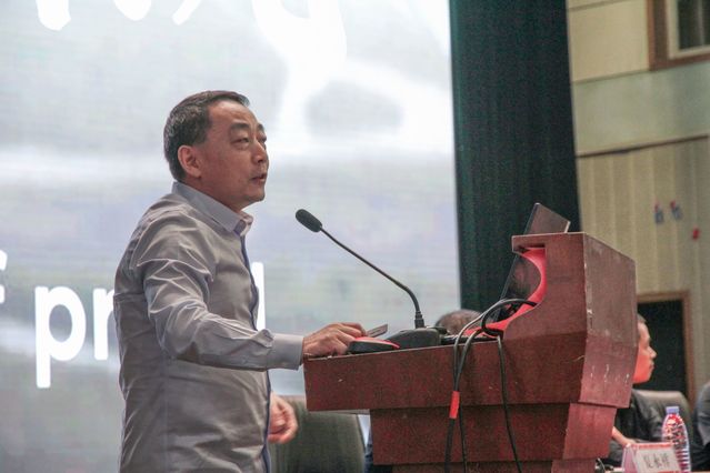 图为鄂州职业大学校长、特聘教授周峰致辞