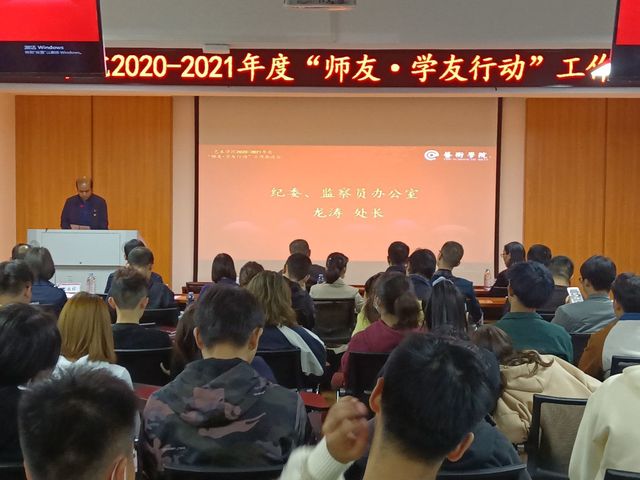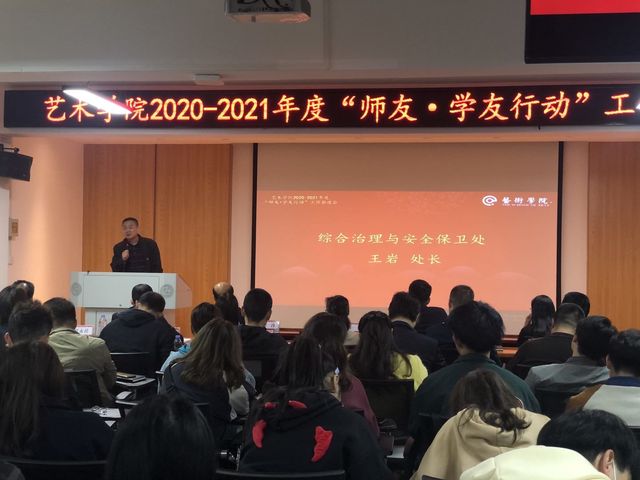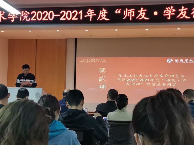 本网讯(通讯员 李京)10月 28日中午,艺术学院2020-2021学年度“师友·学友行动”推进会在艺术学院学术报告厅举行。校党委常委、纪委书记刘昕,纪委、监察专员办公室处长龙涛,综合治理与安全保卫处处长王岩,艺术学院党委书记雷静和出席会议,艺术学院党委副书记夏永祥主持会议。