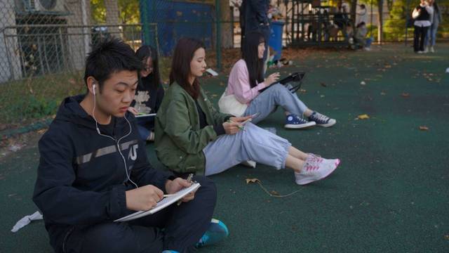 美术系同学为来往的路人画像