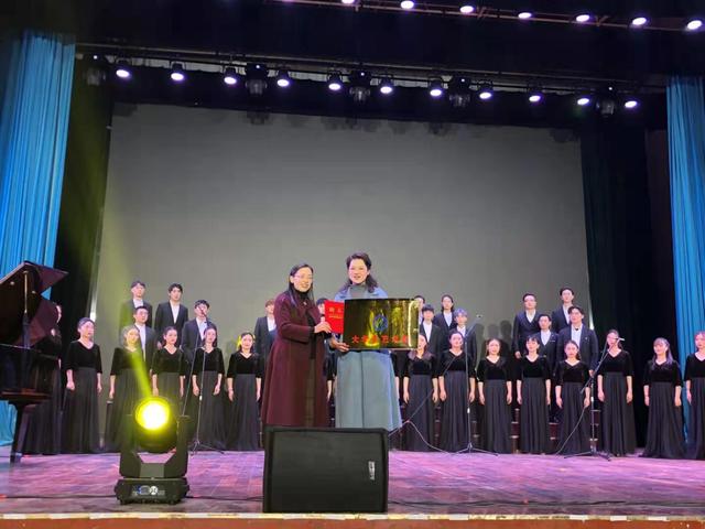 汇演伊始,艺术学院院长金波为大学生艺术团授牌,艺术学院分党委书记雷静和为青年教师韦也纳颁发艺术团团长聘书。
