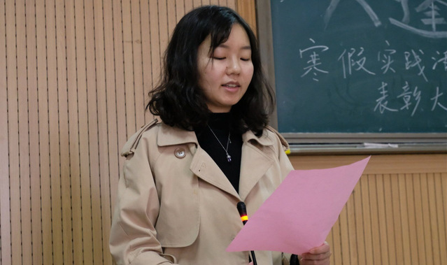骆夏君老师宣读了戏剧大篷车社会实践优秀表彰名单,夏书记发表了热情洋溢的讲话,对志愿者们的寒假实践所取得的成绩表示祝贺,对王博士的付出表示感谢,对戏剧大篷车未来发展提出更高的追求目标和期望。