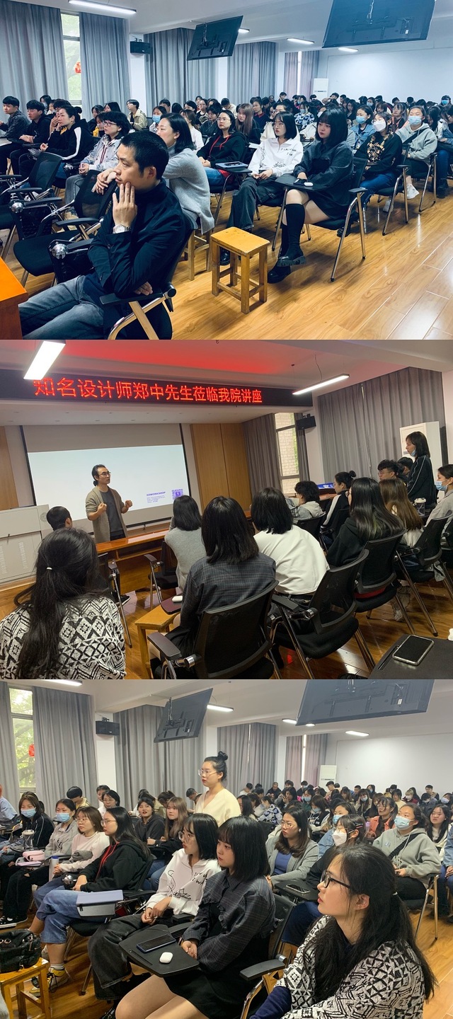 本网讯(通讯员程蓉洁)4月13日下午,知名跨界设计师、策展人,武汉工商学院科技学院副院长郑中为视传系师生做了《设计计划》为题的精彩讲座分享。艺术学院副院长赵文和视觉传达系的全体老师参加了讲座活动。