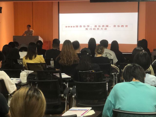 本网讯(通讯员张珊珊)9月16日上午9:00,音乐系在9210举办2022届毕业生实习动员大会,音乐系全体教师和2022届音乐学、音乐表演、音乐教育三个专业全体学生参加。