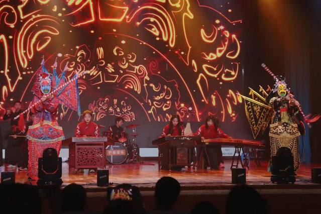 图为郝轩卿、薛鹏、赵敏等带来的民乐合奏《精忠报国+龙的传人》