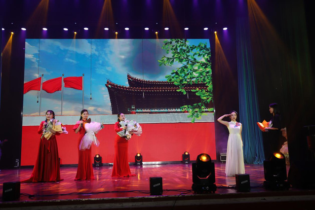 “红日升在东方,其大道满霞光,我何其幸,生于你怀。难同当 福共享 挺立起了脊梁,以仁爱,吾国万疆 ”,歌声激励着我们为国家富强而努力,歌声鼓励着我们为民族复兴而自强。为祖国献礼,为党献歌,下面是由李雨蔓、梁珊珊、罗匀、陈乐带来的《万疆》。