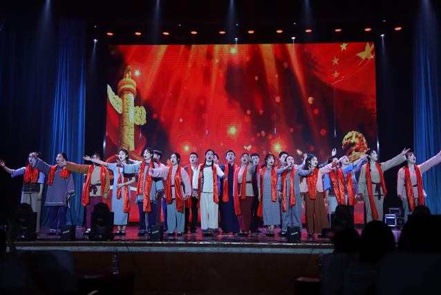 图为18音表1班全体同学带来的《日出韶山东方红》