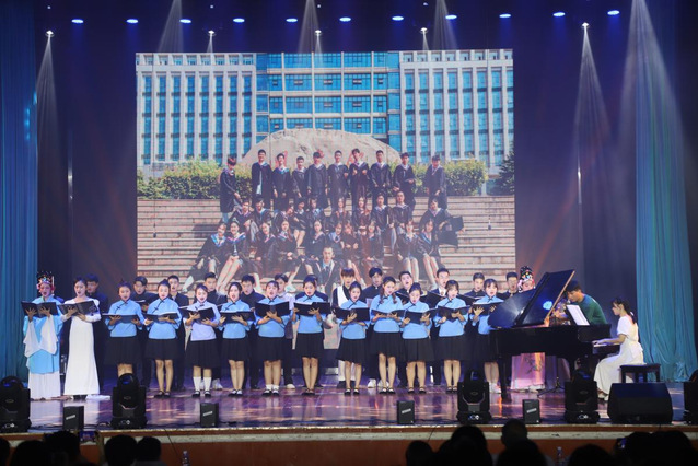 图为18音乐表演1班全体同学为大家带来合唱《城南送别》