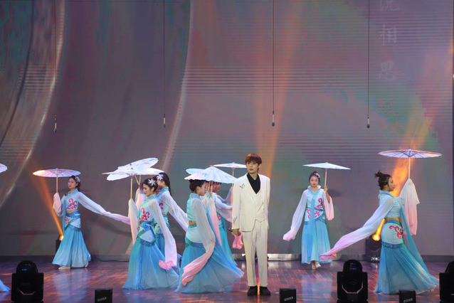 图为常锡成、赵天源、朱海英等同学为大家带来《相思赋予谁》