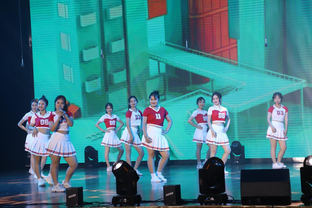 台上的好男儿热情似火,有力的歌声与铿锵的朗诵令我们激情澎湃。流年疯过,我们肆意的张狂等一帘如景的妮妮,而这一切又无关风与月。有时候就是那一刹的娇美,最能动人心弦,接下来,是何静雨,严易珍带来歌伴舞《风月》。