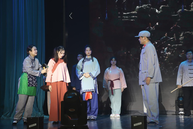 图为罗匀、马多等同学带来的表演《沂蒙山,永远的爹娘》