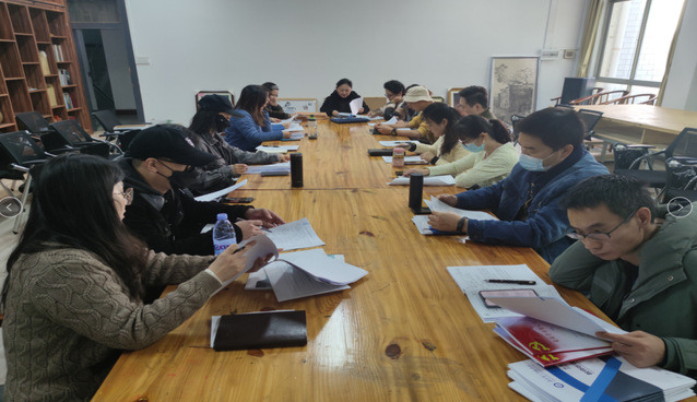 本网讯(通讯员 唐荣华)2021-2022学年度上学期期中教学质量检查工作布置会于11月8日14时在美术系办公室召开。会议由教学办主管唐荣华主持。艺术学院副院长刘畅、院长助理谢敏、系主任、专业负责人和校院督导参加会议。