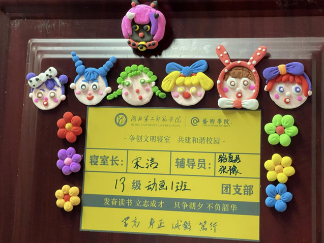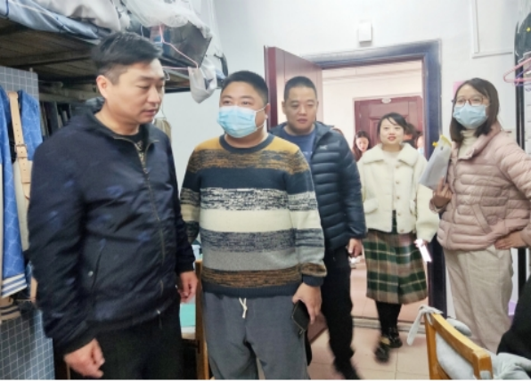 在各领导老师们巡查的过程中,西10-101寝室引起了老师们的注意,雷书记夸赞,温馨的门牌装饰,整齐干净的宿舍环境,看出了孩子们对“小家”的爱护,鼓励同学们在温馨的小家中奋发向上,学业有成。