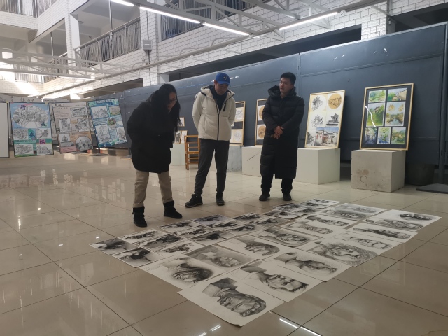 2021年12月8日下午数媒系系主任付丹老师及数媒系副主任叶凡老师,陈苗老师一同在艺术学院展厅对2021级动画专业新生素描课阶段性作业进行了集体评议。在听取任课老师介绍课程目标及如何完成目标的课程教学设计方法后大家根据作品一起讨论了这届学生的专业基础技能水平,分析了形成的原因,提出了针对性的解决建议。本次教学活动也是对动画专业2021级本科新生专业复测工作的落实。