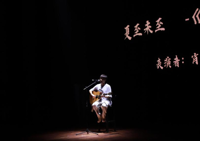 图为肖小铁同学带来的弹唱《虫儿飞》