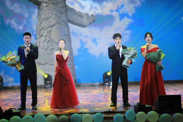 图为由李文华、郝锐星、张紫婧、郭家乐带来的小合唱《天耀中华》