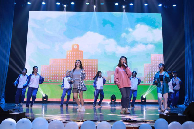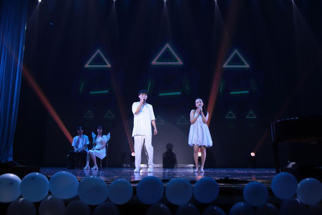 图为由李子贤、黄山田成、武梦如、肖小铁、顾文涛、肖灼烨带来的歌曲串烧《我们的追忆时代》