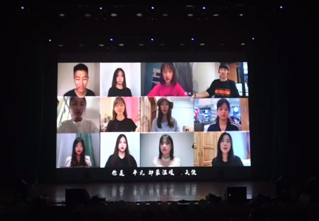 图为由18级音乐学2班全体同学带来的云合唱《平凡天使》